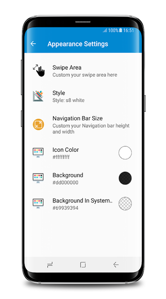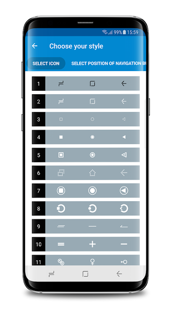 Ứng dụng này sẽ cho phép bạn thay đổi kiểu của thanh điều hướng, bạn có thể thêm các biểu tượng khác nhau và thay đổi màu sắc của các biểu tượng cũng như nền của thiết bị.